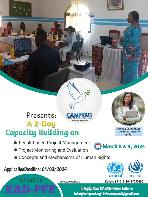 A capacity enhancement and exchange program to strengthen the understanding of project staff, development practitioners, young activist, managers and Cameroonian youths on basic human right issues in project management, core project management, monitoring and evaluation concepts that result to successful implementation of projects.